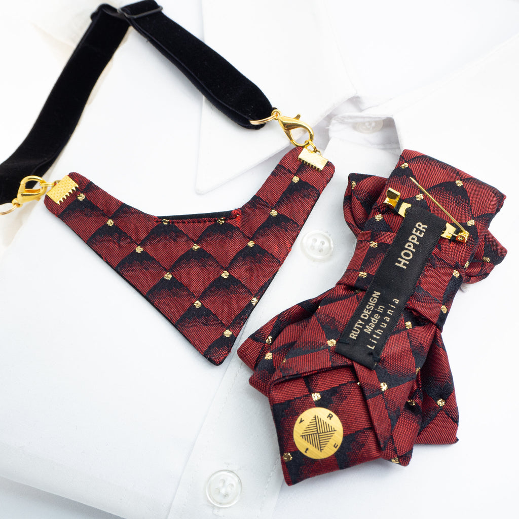 Womens necktie, BOW TIE BORDO DIAMOND FOR LADIES, handmade ladies red necktie