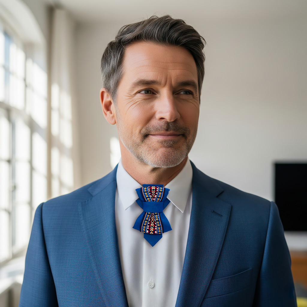 Elevate your style with this extraordinary handmade vertical bow tie, crafted in Lithuania, Europe. Designed by Rūta Piekurienė, this piece redefines traditional neckwear, offering an innovative shape that stands out with elegance and originality.