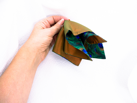 There are countless ways to fold a pocket square, easily found through online guides. For pairing with our Hopper tie, we recommend a clean, geometric fold that complements the tie’s modern design—such as folding one corner upward to form a sharp, visible triangle. Alternatively, a smooth fold exposing only a narrow fabric edge creates an understated yet sophisticated accent. Even a small glimpse of fabric can beautifully enhance your overall look.