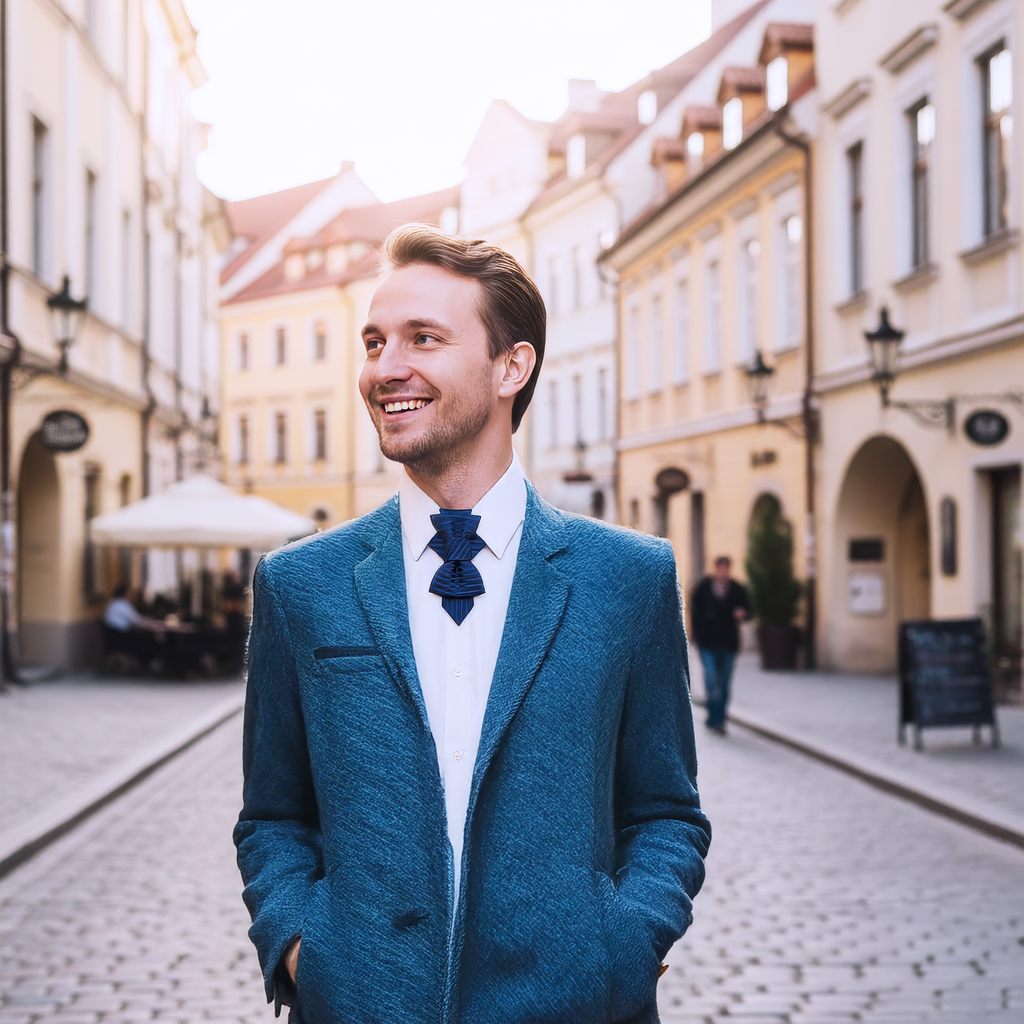 This unisex accessory is a modern combination of elements found on traditional ties and bow ties. It is recommended not to tighten the regulation strip too much: Hopper is at its best when leveled up with the collar line. Freestyle fashion lovers should bear in mind that this accessory also looks great with the collar unbuttoned.