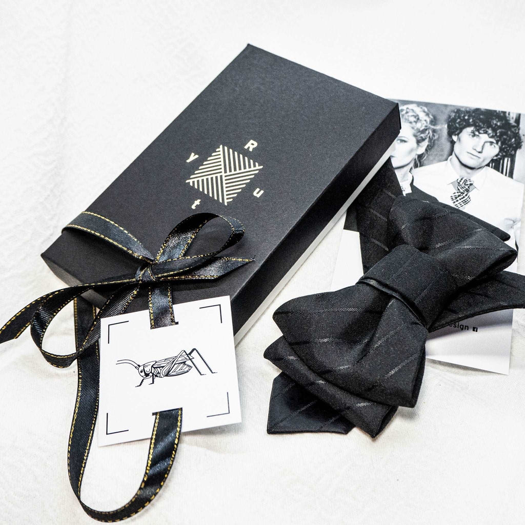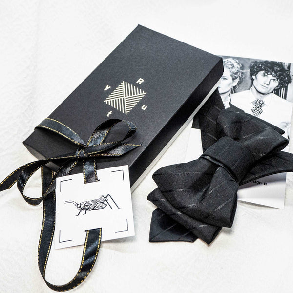 Luxury Handmade Black Vertical Bow Tie — A Modern Masterpiece by Rūta Piekurienė