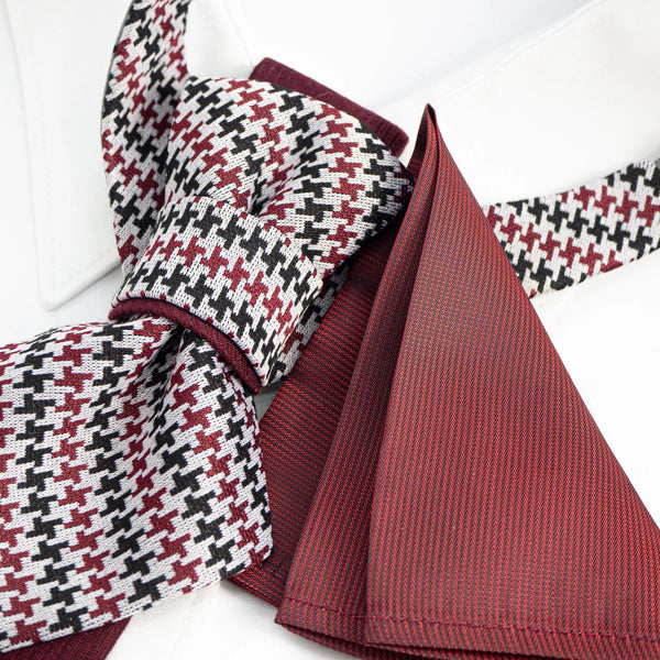 Luxury Black, Gray & Red classic houndstooth ornament Necktie – Handmade Accessory for Extraordinary Men or Women ✨