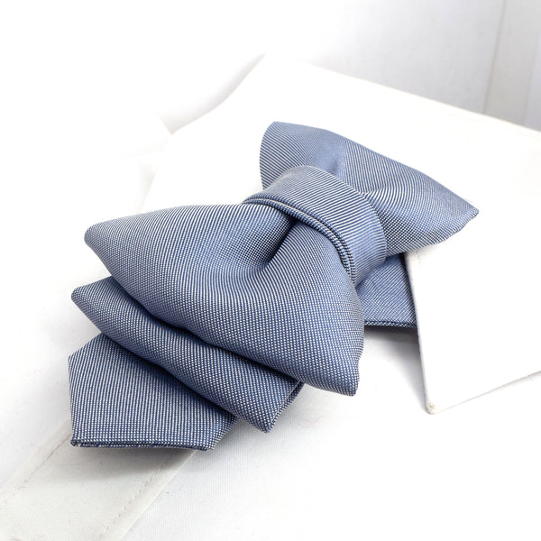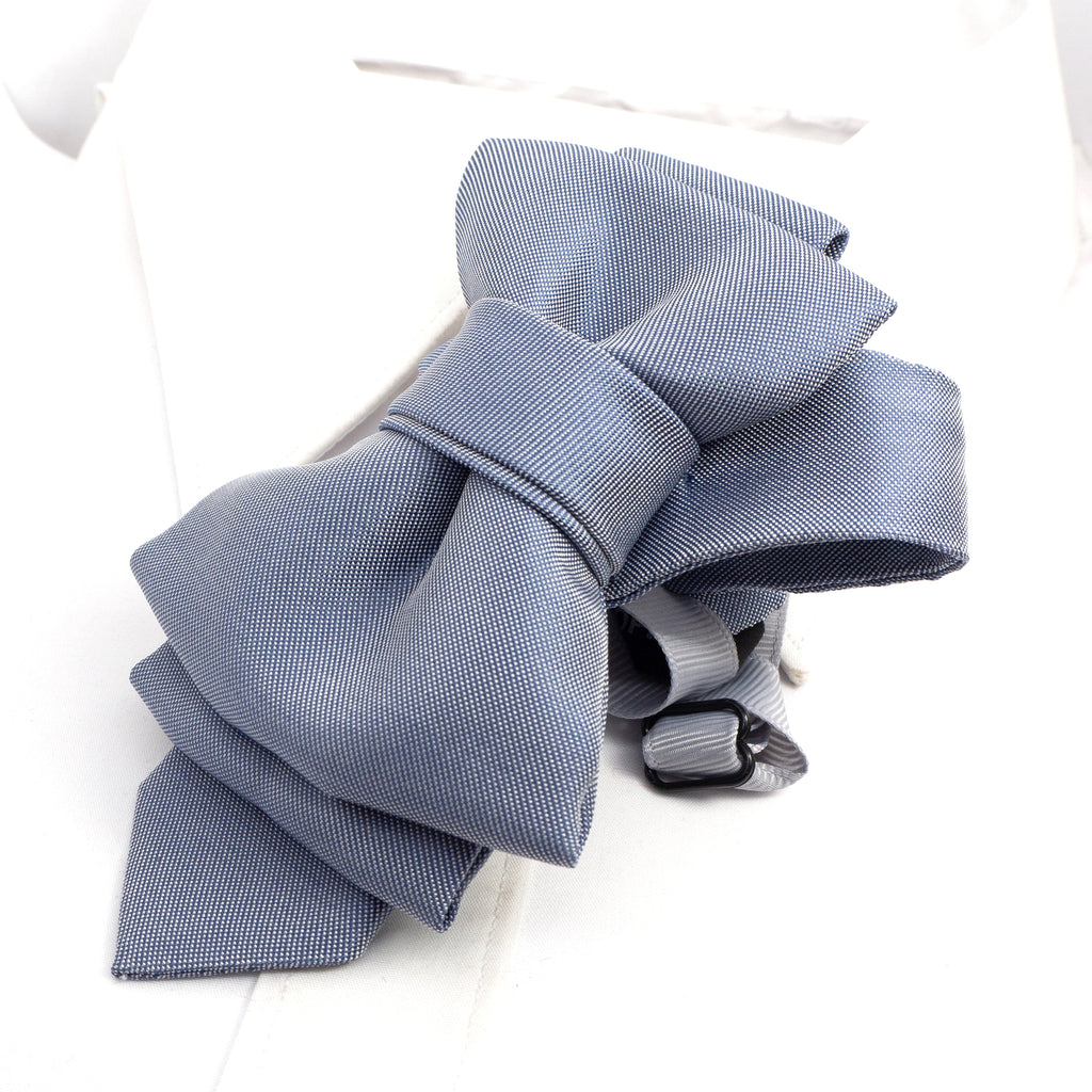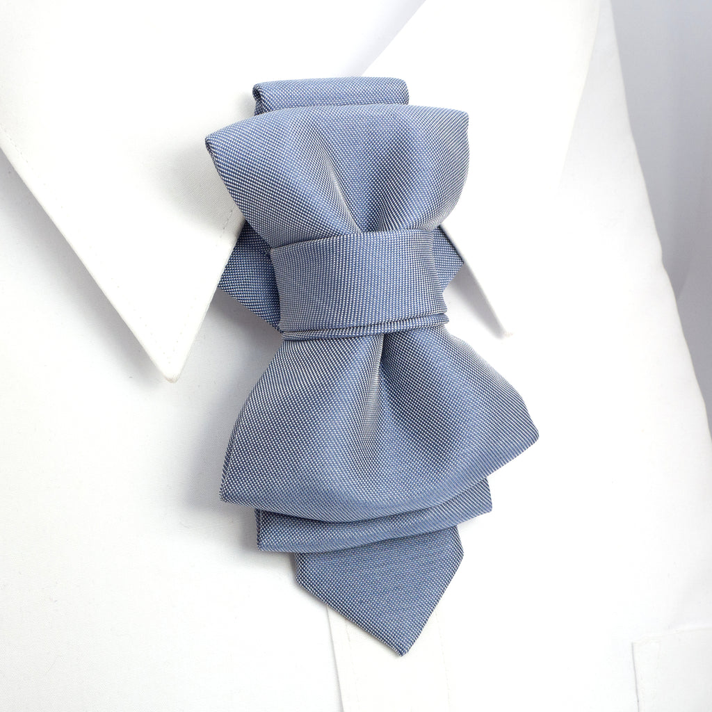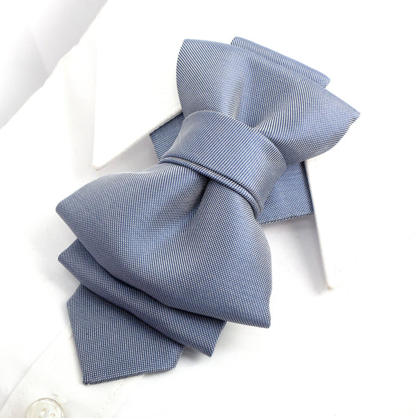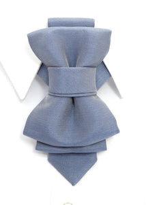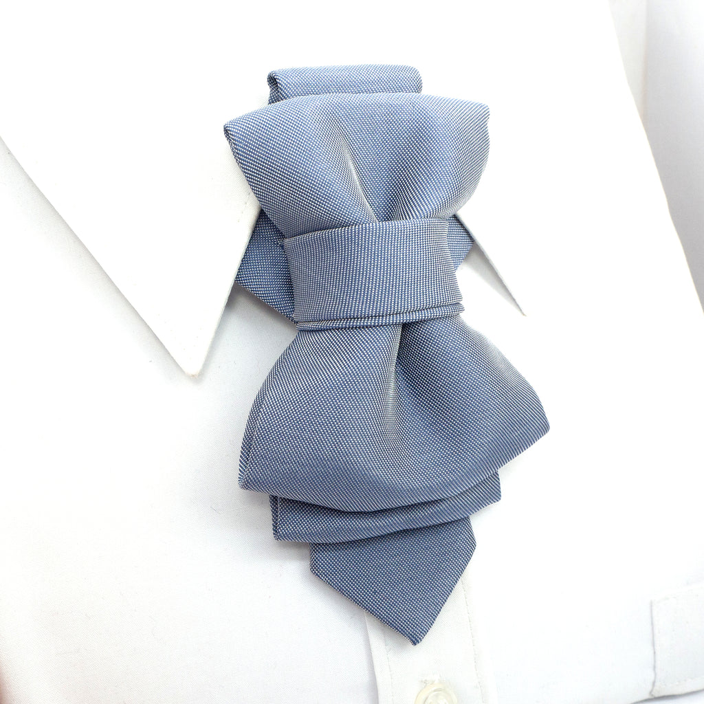 sculptural necktie, modern cravat, handmade gray blue tie, statement neckwear, unisex fashion tie, couture tie design, pre-tied unique tie, artistic wedding tie, luxury men's accessory, elegant tie for women, structured neck piece, designer tie by Ruty Design, bold formal tie, textured fabric tie, handmade performance tie