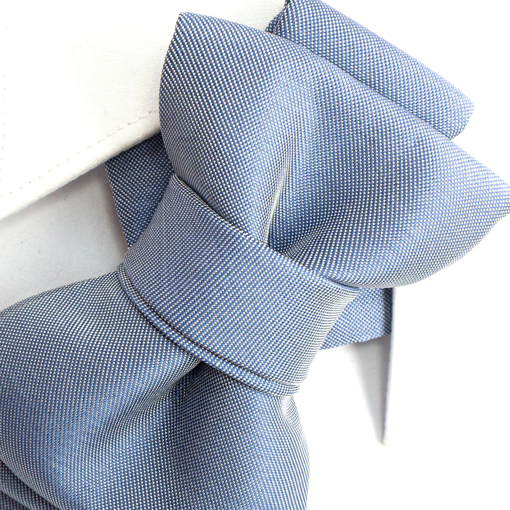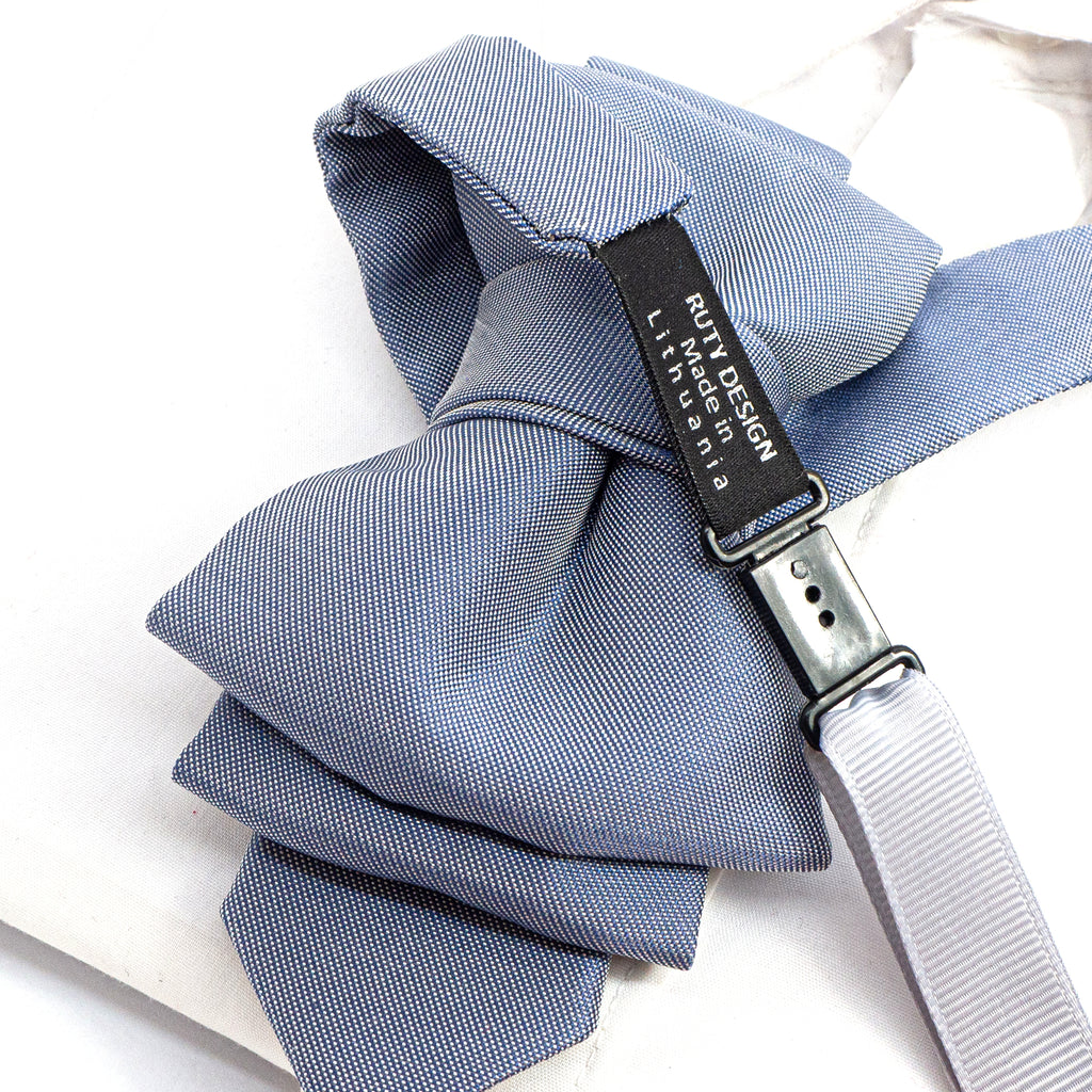 handmade gray blue tie, sculptural necktie, unisex fashion tie, artistic wedding tie, modern cravat, elegant blue accessory, pre-tied unique tie, statement neckwear, couture tie design, Ruty Design tie