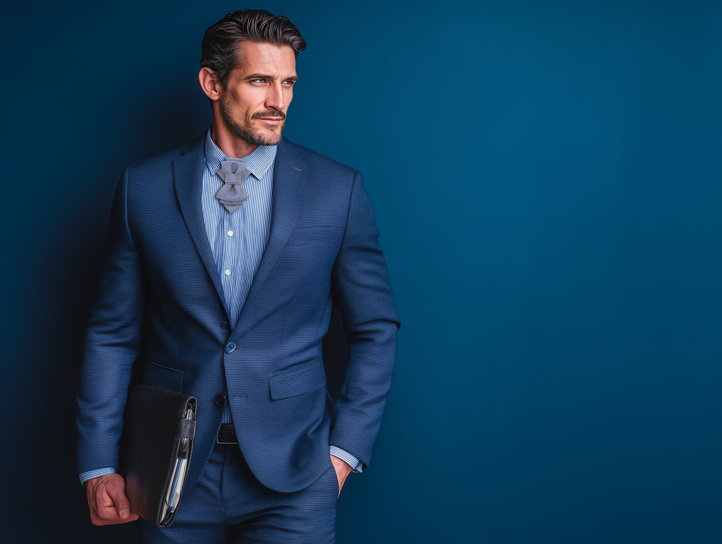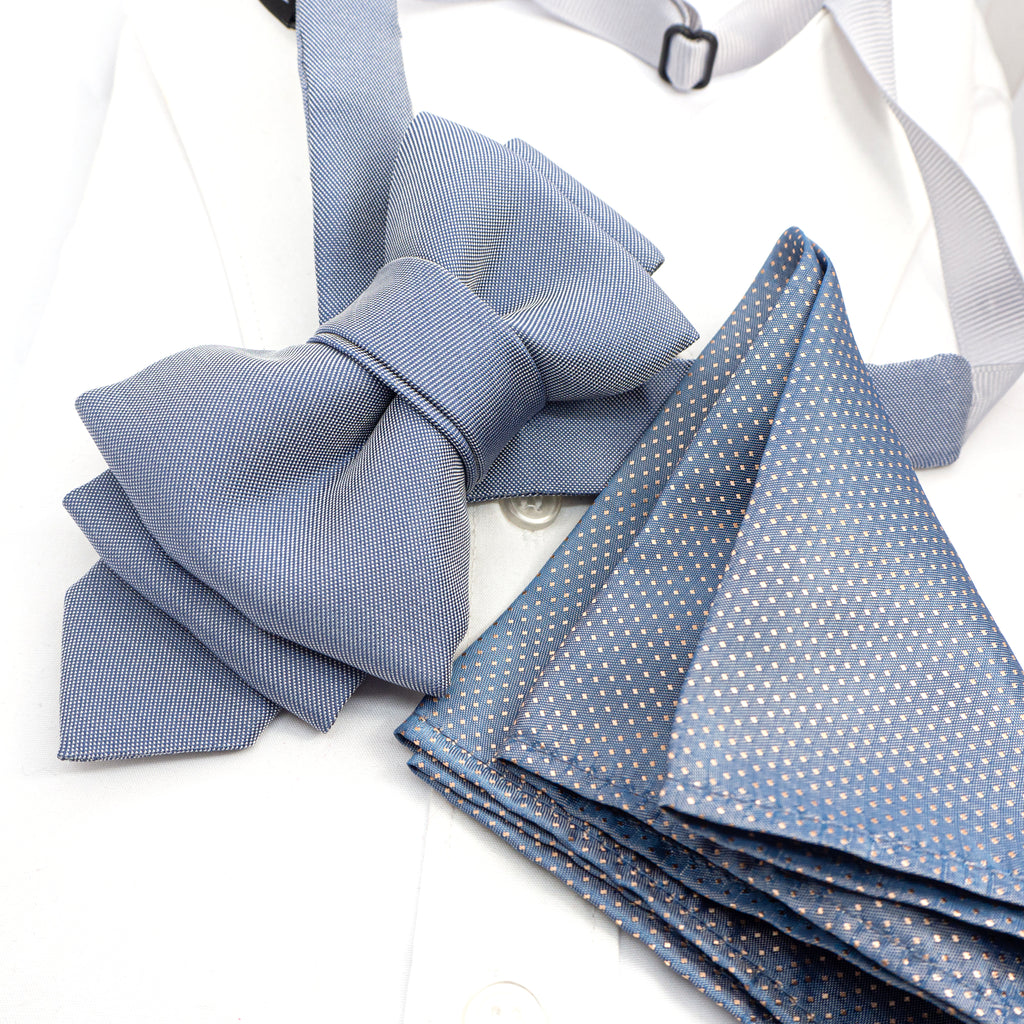 Crafted from high-quality textured fabric in a soft, refined blue-gray, this piece speaks to those who appreciate detail, creativity, and exceptional quality. Its sculptural folds and modern lines draw attention without shouting—making it perfect for grooms, artists, musicians, and every soul who celebrates individuality.