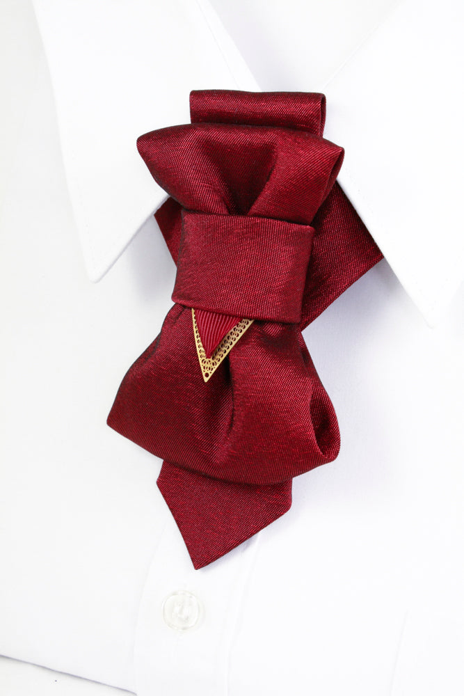 An exclusive and elegant neck accessory of red wine color tone. This color is a smart and well match for a variety of tones such as blue, black, grey desert sand, and white for classical suits, tuxedos. Shiny yet moderate, this HOPPER TIE will enrich any special occasion of yours. Bordeaux II is decorated with the gold color element and a traditional triangle in the center of it.