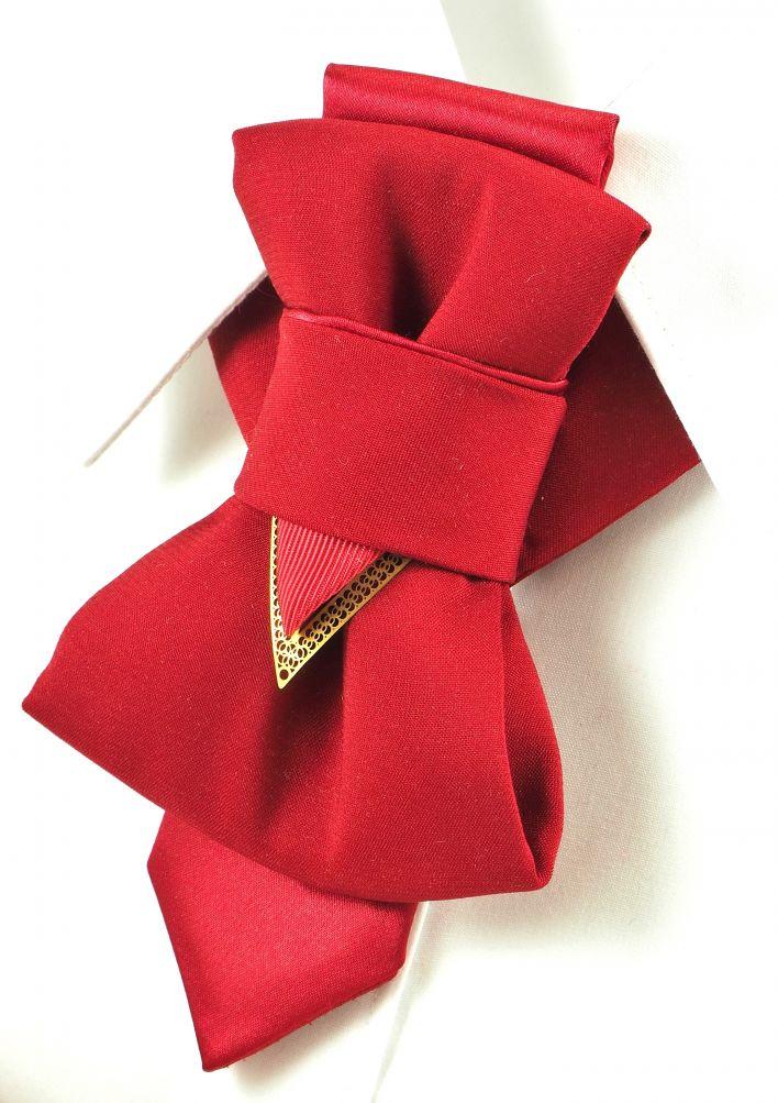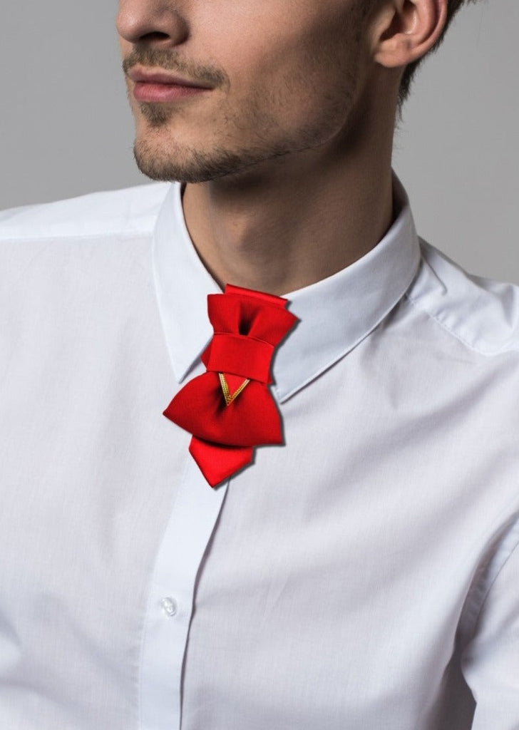 Handmade accessory with a bold and elegant shape, part of the original Hopper Tie collection. A statement piece perfect for formal events, weddings, or fashion-forward looks. Striking red bow tie in a unique sculptural design by Ruty Design.