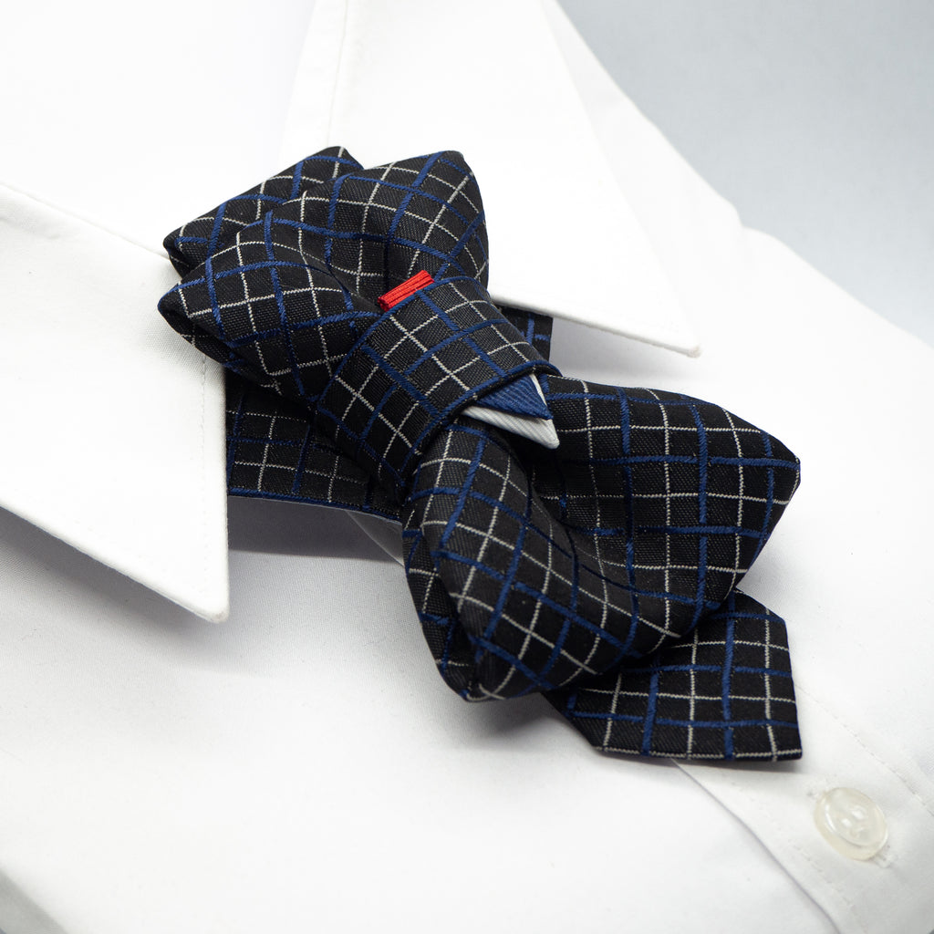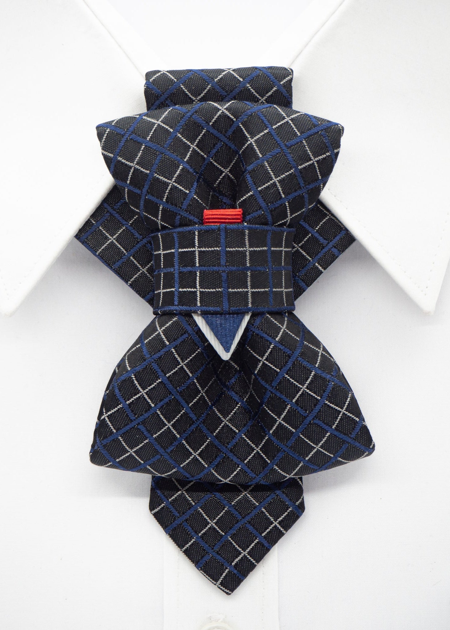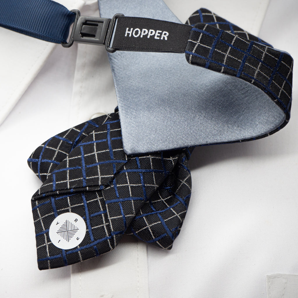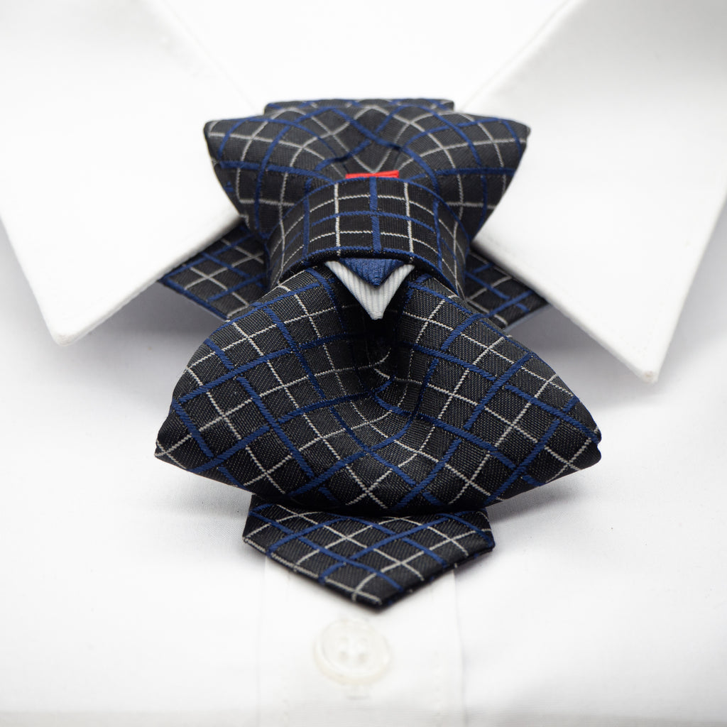 Where blue-grey lines meet bold geometry — the CROSSROADS design brings together a classic checkered pattern with the unmistakable silhouette of the Hopper tie. This striking piece is perfect for those who appreciate refined details with a modern edge. Suitable for work, academic settings, and stylish leisurewear, it pairs beautifully with blue, grey, red, white, or black clothing.