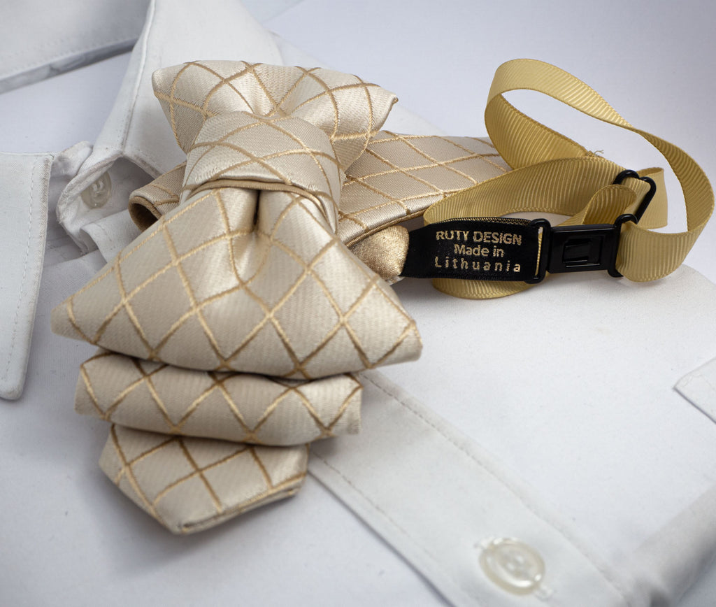 PRINCE – a handcrafted bow tie in soft pastel sand, made in Lithuania