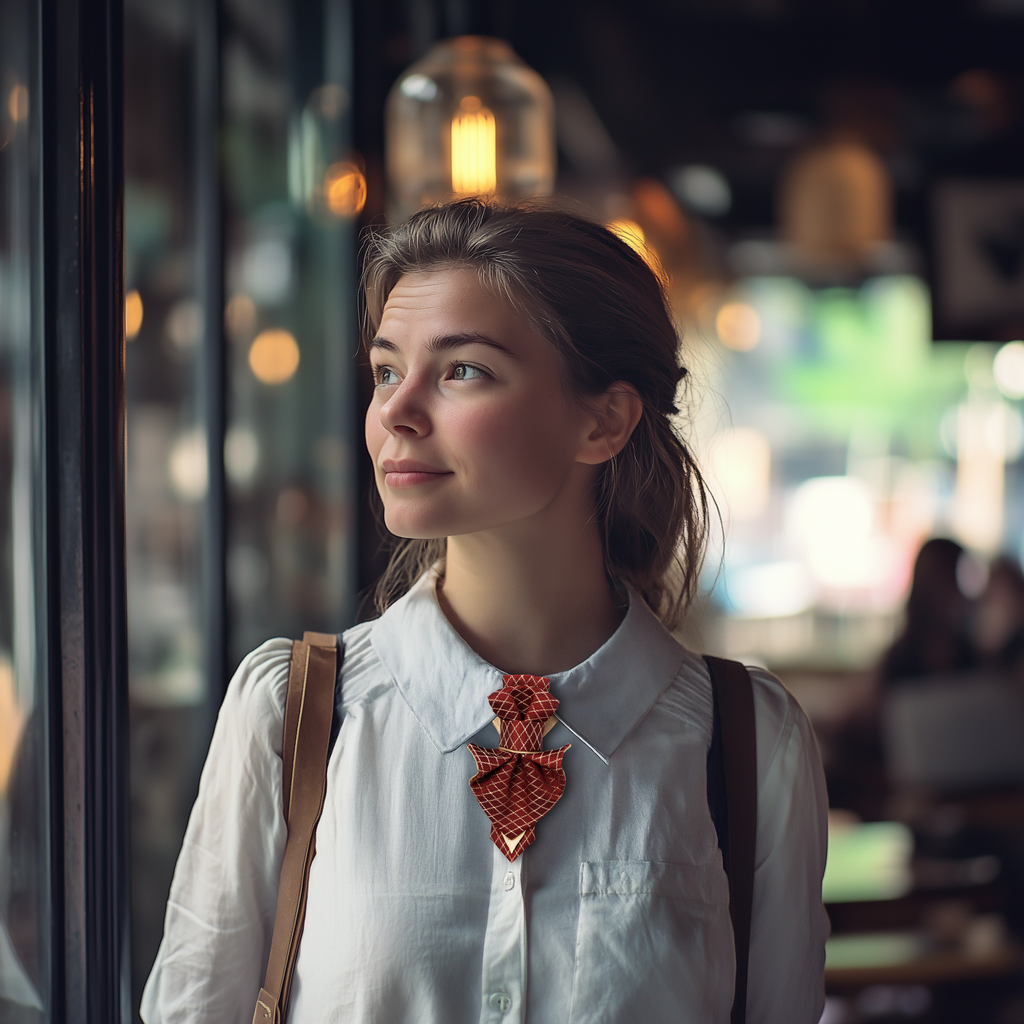 Hopper tie for women is designed to be worn not only with shirts but also with clothes with an open neck - dresses, blouses, sweaters. Combine ties with gray, white, blue or beige clothes. These will be special highlights of your outfit.