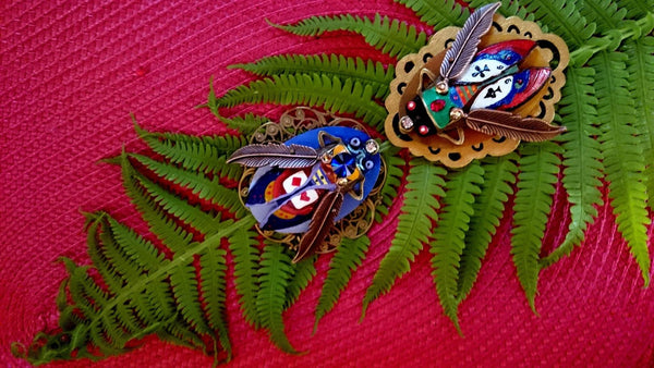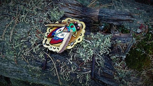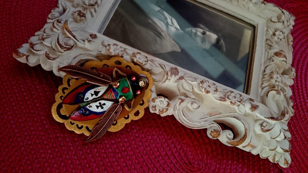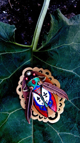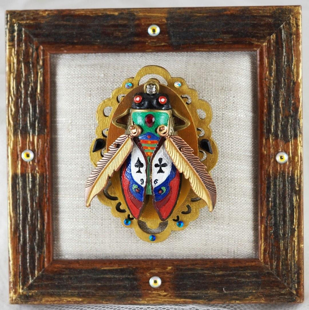 • Intricate Detail: The accessory is built on an oval-shaped wooden plate, covered with a metal base. The beetle is meticulously painted using a classic oil painting technique. Every detail is carefully considered, with the wings decorated with card symbols—hearts, clubs, and spades—adding a sense of mystery and playfulness to the piece.