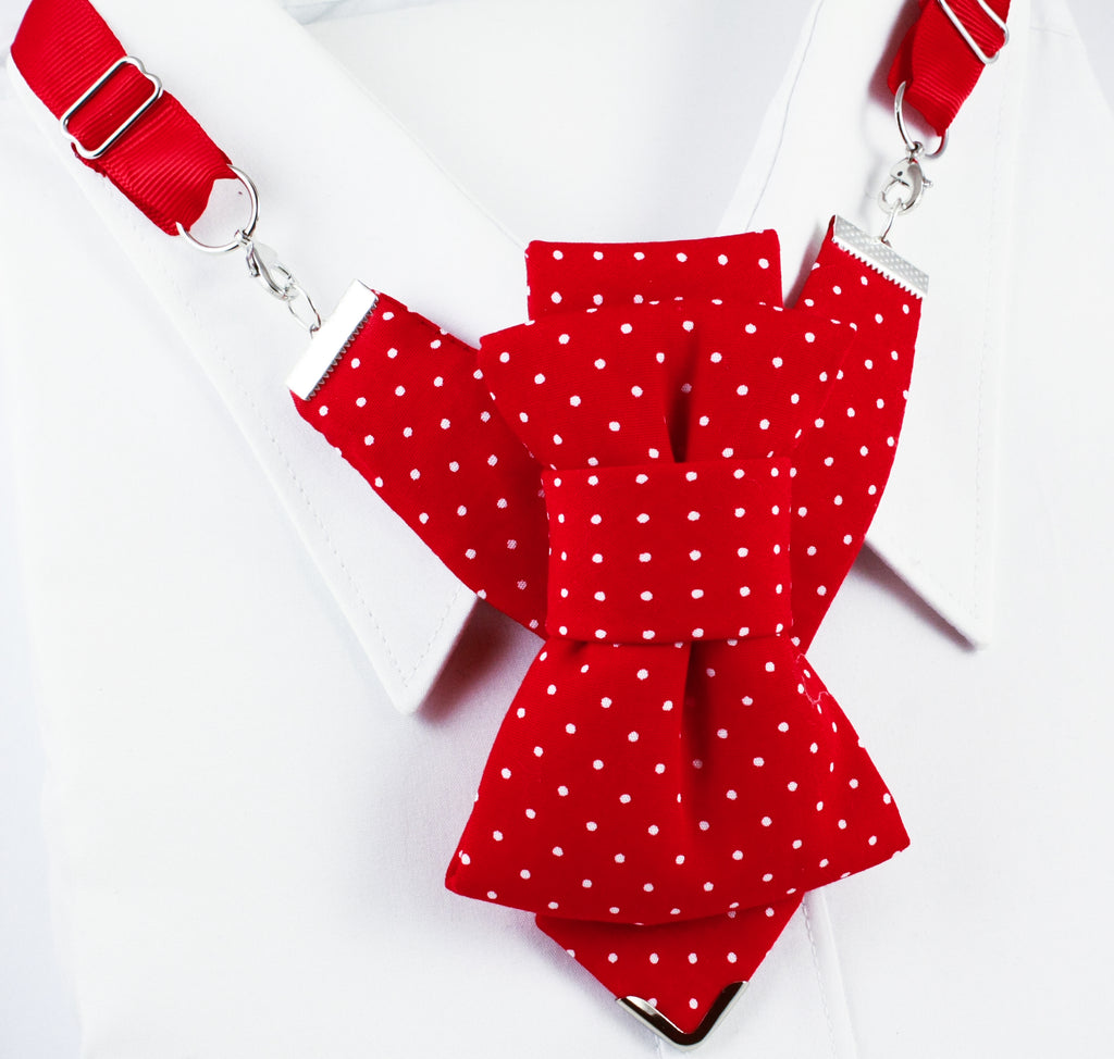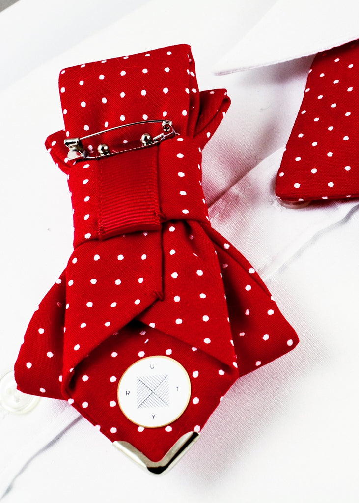 Bright ‘n red Hopper tie "Red with sugar", decorated by white sugar-like dots – an ideal accessory to put you in high spirits. Make a great company for it by combining together a white shirt, black or jeans fabric trousers, or a suit jacket.