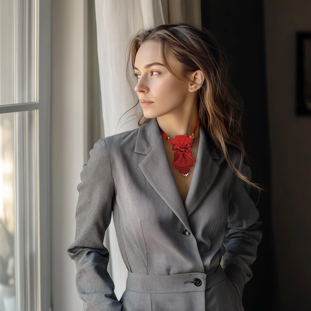 Its vivid red hue symbolizes passion and strength, making it the perfect choice for grooms, musicians, TV hosts, and stage performers who want to leave a lasting impression. Thanks to its versatile design, ROWAN pairs effortlessly with black, navy, white, gray, beige, and green attire, adding a unique touch to both classic and modern looks.