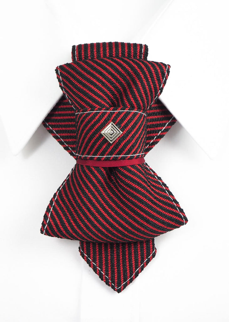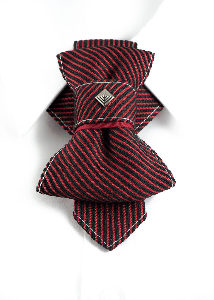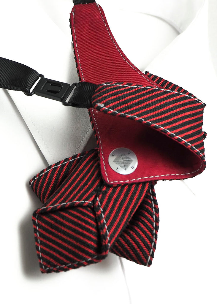 This unisex accessory is a modern combination of elements found on traditional ties and bow ties. It is recommended not to tighten the regulation strip too much: Hopper is at its best when leveled up with the collar line. Freestyle fashion lovers should bear in mind that this accessory also looks great with the collar unbuttoned.