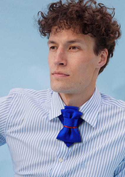 This unisex accessory is a modern combination of elements found on traditional ties and bow ties. It is recommended not to tighten the regulation strip too much: Hopper is at its best when leveled up with the collar line. Freestyle fashion lovers should bear in mind that this accessory also looks great with the collar unbuttoned. With love, Ruta Piekuriene,