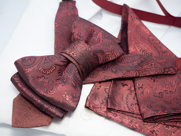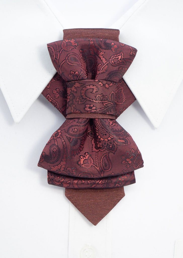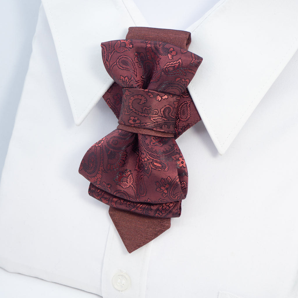 The eastern colors of pink and coral-like tones intertwined with flower ornaments creating fashionable a charming eastern fabric. The combination of patterned texture enhances the overall look of the accessory making its essential part, the knot, stand out even more.