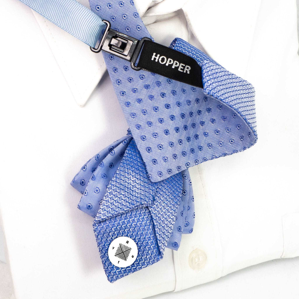 “Combining elements of a traditional tie and bow tie, the exclusive Hopper design has become an original style detail—not only for special celebrations but also for elevating your everyday look.”