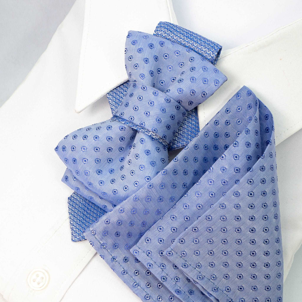 Bring a breath of fresh elegance to your wardrobe with “BLUEBIRD,” a luxury handmade Hopper tie by Rūta Piekurienė. Crafted from two soft blue-tone viscose fabrics of differing textures, this unique design intertwines in an ornate knot, creating a subtle yet distinctive statement for any occasion.