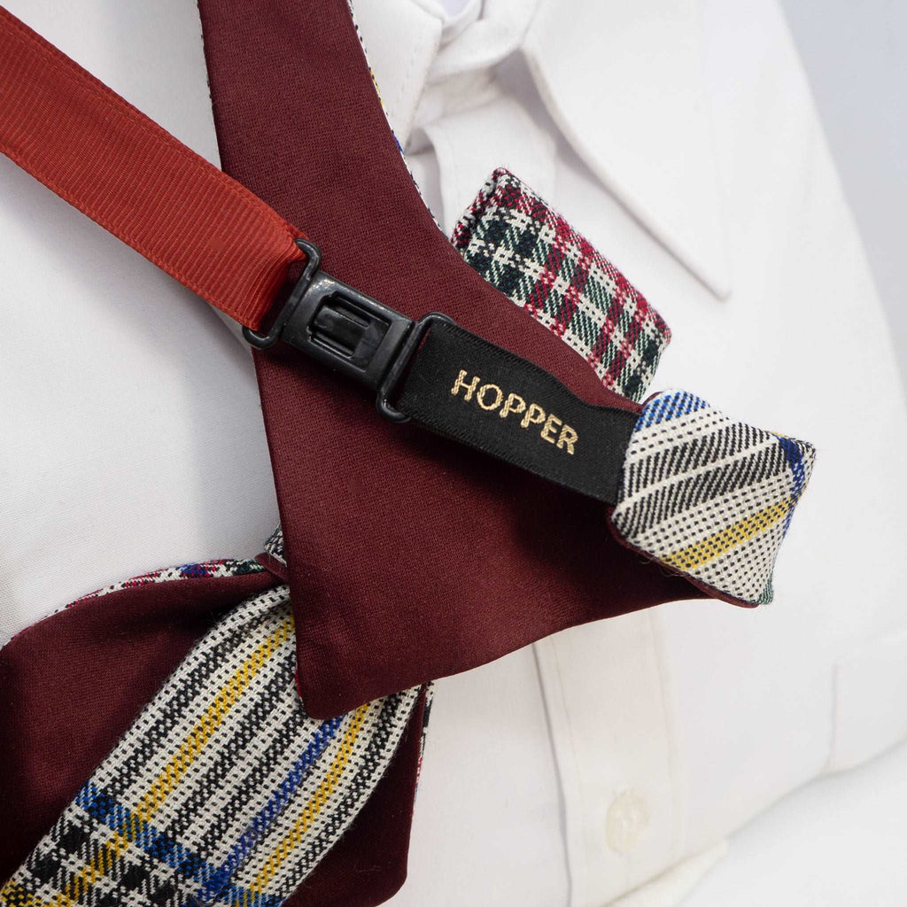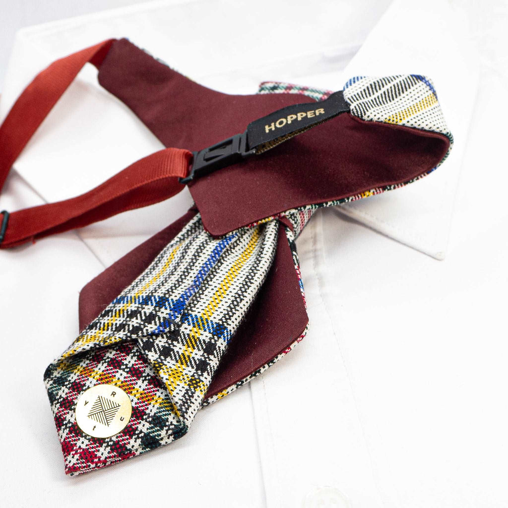 We are thrilled to present our specially designed accessory that combines the elements of a tie and a bow tie. Our handmade pieces are unisex, making it the perfect addition to any leisure event or holiday outfit, as well as a great accent in the office. The bright, checkered, and striped "August" tie is versatile and can be easily paired with many of your clothes. Don't be afraid to experiment with Hopper ties in your wardrobe - the possibilities are endless!