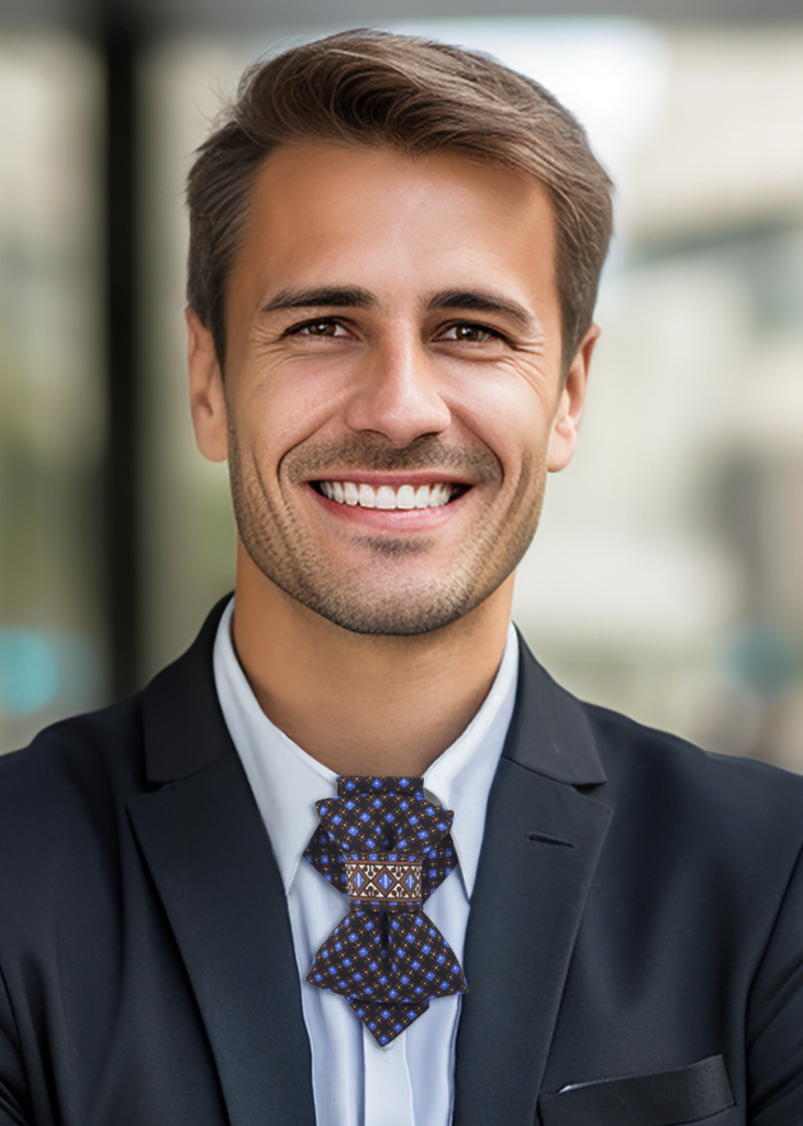 Feel When Wearing: Wearing this unique blue tie feels like a moment of distinction—whether at a wedding, where you feel the excitement and joy of the celebration, or in a business presentation, where it adds a touch of confidence and authority. It offers a quiet luxury that catches the eye without being too flashy. As you wear it, the tie feels smooth and luxurious around your neck, subtly boosting your confidence and making you feel special. Every time you wear it, whether in your daily routine or for an important event, you'll feel poised, elegant, and truly unique. The feeling of wearing something handmade, crafted with care and passion, adds a personal touch to every outfit.