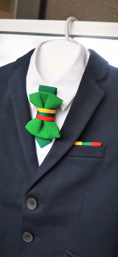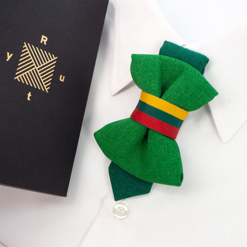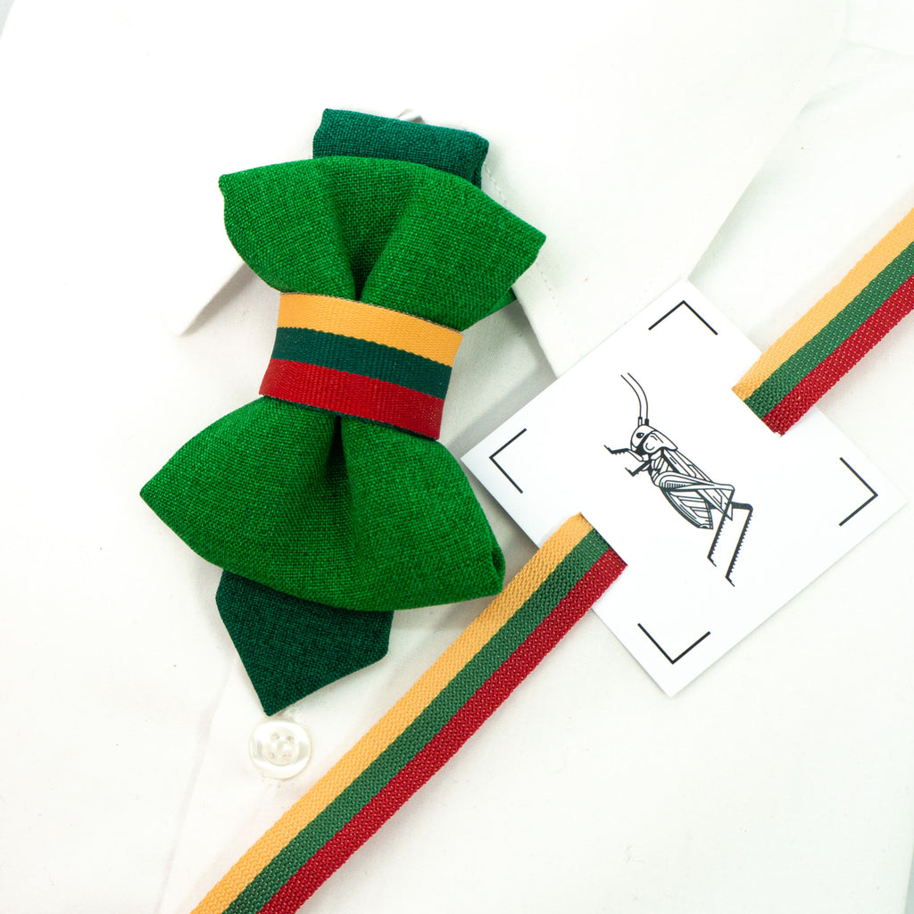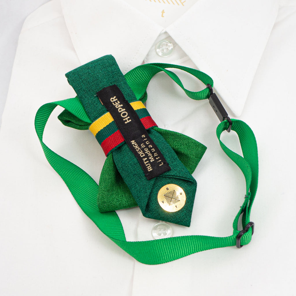 Young Lithuanian patriots will be delighted by a bright green Hopper tie embellished with the Lithuanian flag motif. It is universal, so it is suitable for both girls and boys. Children aged 4-9 can be wear with this Hopper tie, adding a dash of style and patriotism to their outfit. When worn in a school environment, they are much more comfortable than traditional long ties. A short vertical knot does not splash around and does not hinder the child during games, at the canteen or art class.