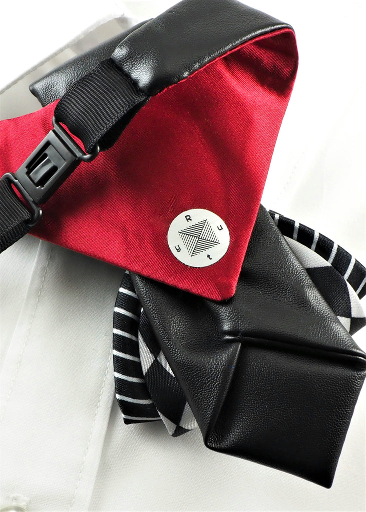 Make your move in style with the Hopper Tie "Strategist" – a one-of-a-kind statement accessory crafted from luxurious black faux leather and graphic fabric. This is the last unit available in this material – once it’s gone, it’s gone for good.