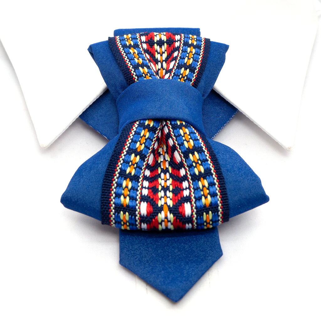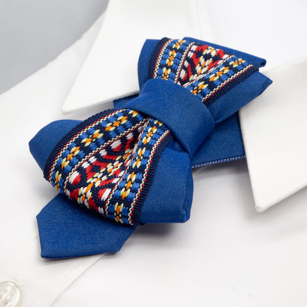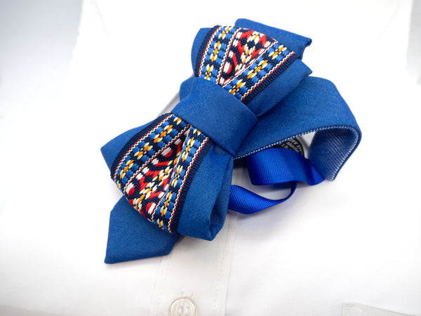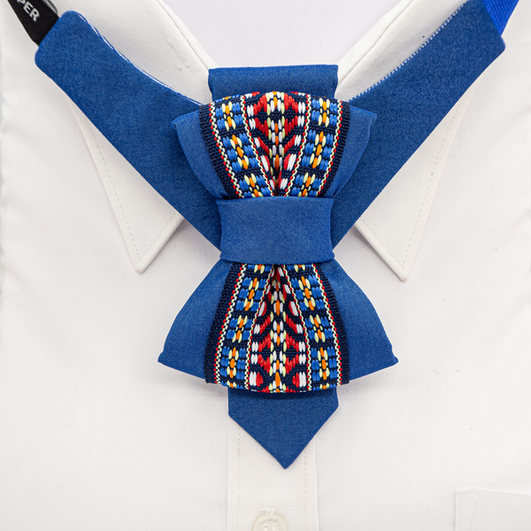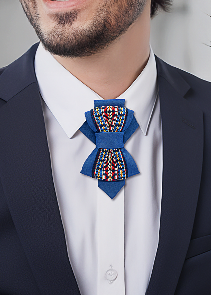 Make your outfit unforgettable with this exclusive blue vertical bow tie.