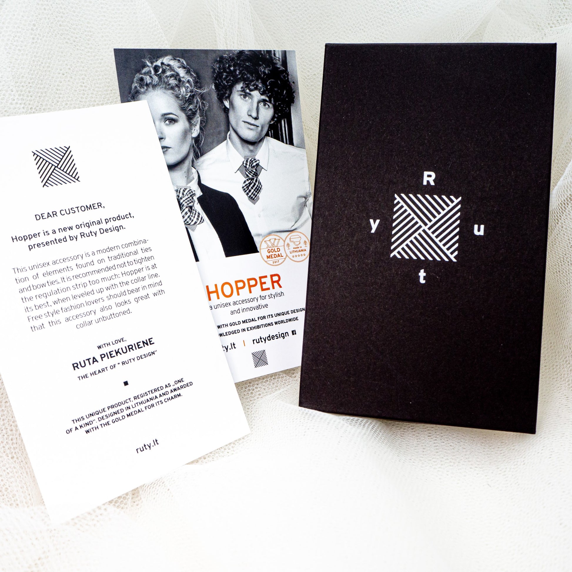 This unisex accessory is a modern combination of elements found on traditional ties and bow ties. It is recommended not to tighten the regulation strip too much: Hopper is at its best when leveled up with the collar line. Freestyle fashion lovers should bear in mind that this accessory also looks great with the collar unbuttoned.