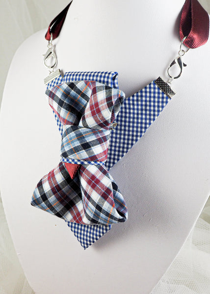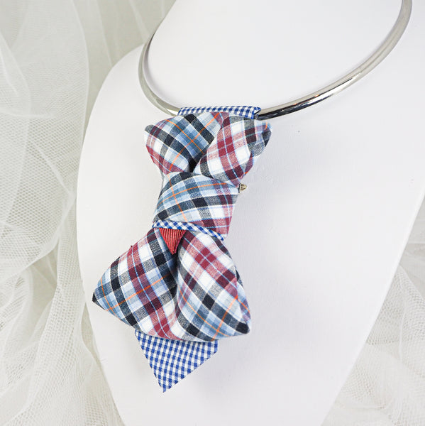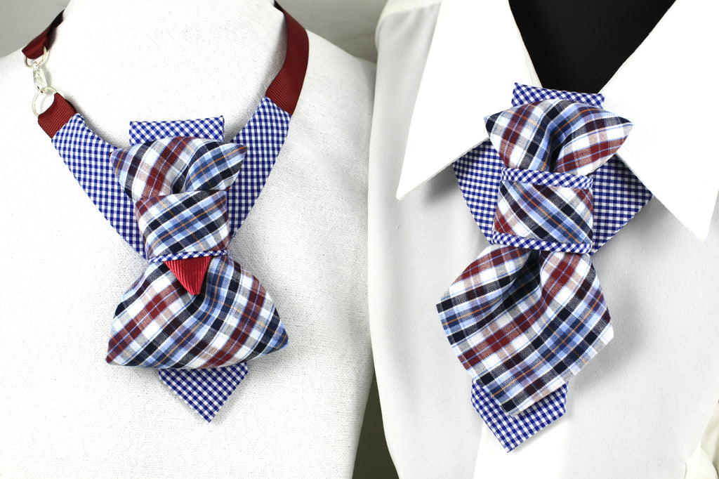 Women's luxury necktie, plaid bow tie, unique accessory, handmade quality, formal wear